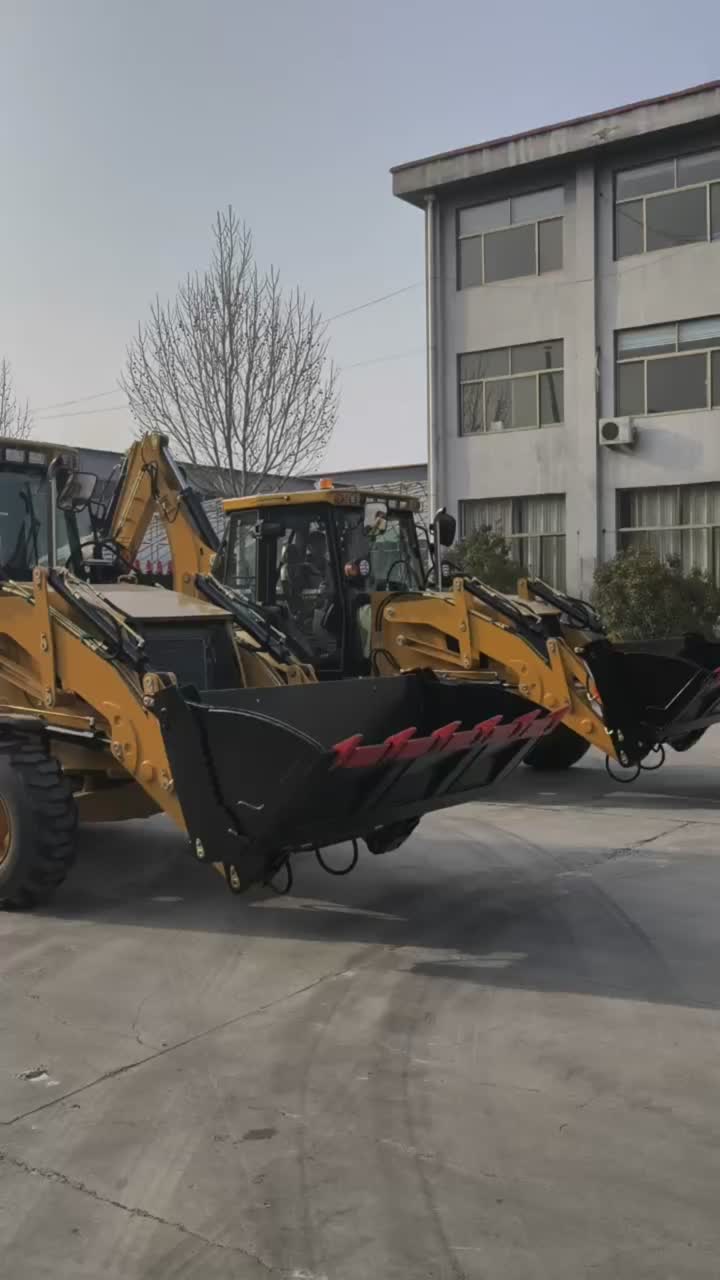 The EX388 Backhoe Loader combines the functions of a loader and an excavator, enabling multi-functional operation. 1. Operating Weight: 8 tons; Standard Loader Bucket Capacity: 1.3 m³; Backhoe Bucket Capacity: 0.35 m³. Suitable for a wide range of construction projects. 2. Custom Versatile 4-in-1 Bucket: loading, dozing, leveling, and grappling. 3. Custom Telescopic Excavation Arm: Extends working radius and digging depth. 4. A-Leg: Hydraulically foldable, easy to retract, safe and stable. 5. 4WD & vacuum tires for tough terrain 6. Engine Options: Weichai, Yuchai, Cummins, or Yunnei.